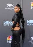 Chlöe Bailey made quite an entrance at the 2022 Billboard Music Awards. The singer hit the red carpet in an all-black cutout dress, but it was her hair - which was styled into a high, butt-length ponytail - that really grabbed our attention. As if the length alone wasn't enough to turn heads, the ponytail was twined with gold wire that matched her jewelry.